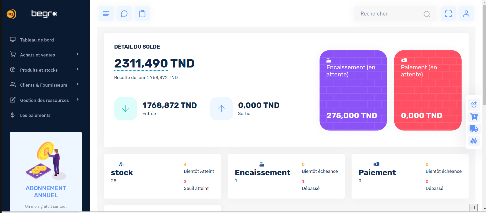 C'est une solution cloud de gestion dédiée aux sociétés de commerce, grossistes ou détaillants.La gestion se fait en temps réel(à tout moment et à n'importe quel endroit).